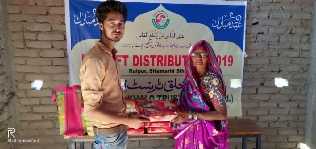 प्रेस रिलीज़,सीतामढ़ी:सीतामढ़ी जिला के रायपुर गांव में खिदमत ए खल्क ट्रस्ट इंडिया की ओर से गरीबों में ईद गिफ्ट बांटा