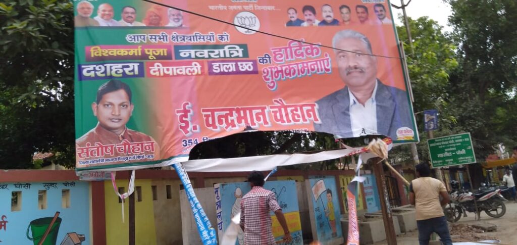 मुजफ्फरूल इस्लाम/मिल्लत टाइम्स,घोसी(मऊ)। विधानसभा उपचुनाव का बिगुल बजने के उपरांत स्थानीय नगर पंचायत के कर्मचारी नगर में लगे होर्डिग व