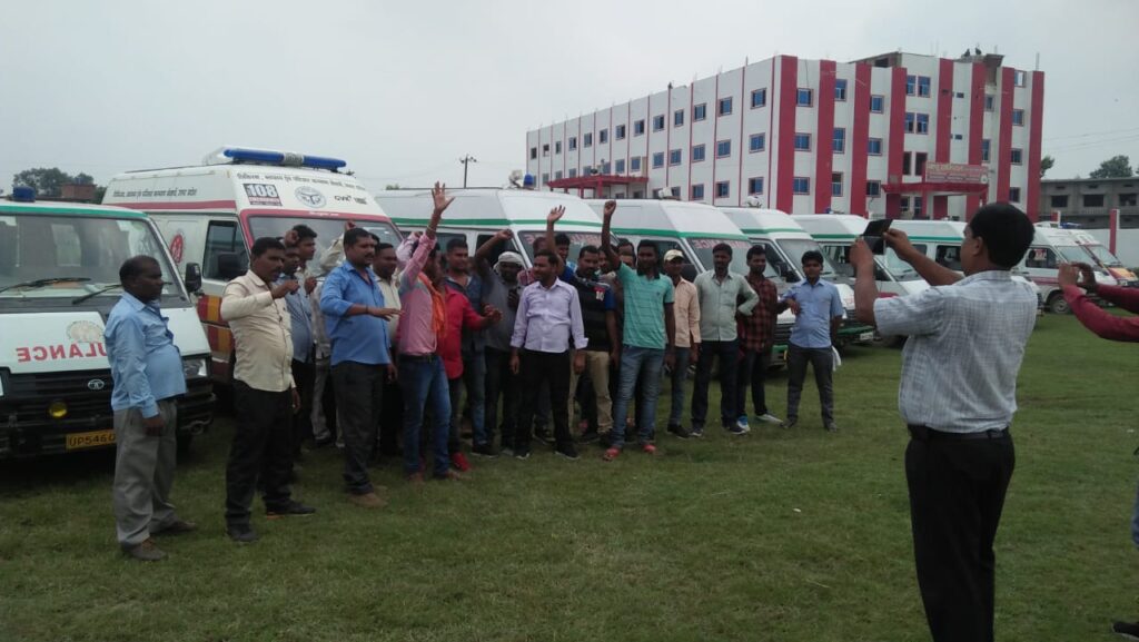 घोसी (मऊ)। सामुदायिक स्वाथ्य केंद्र घोसी में एम्बुलेन्स 102 एवं 108 के संविदा चालकों ने सोमवार को पायलट प्रोजेक्ट सहित