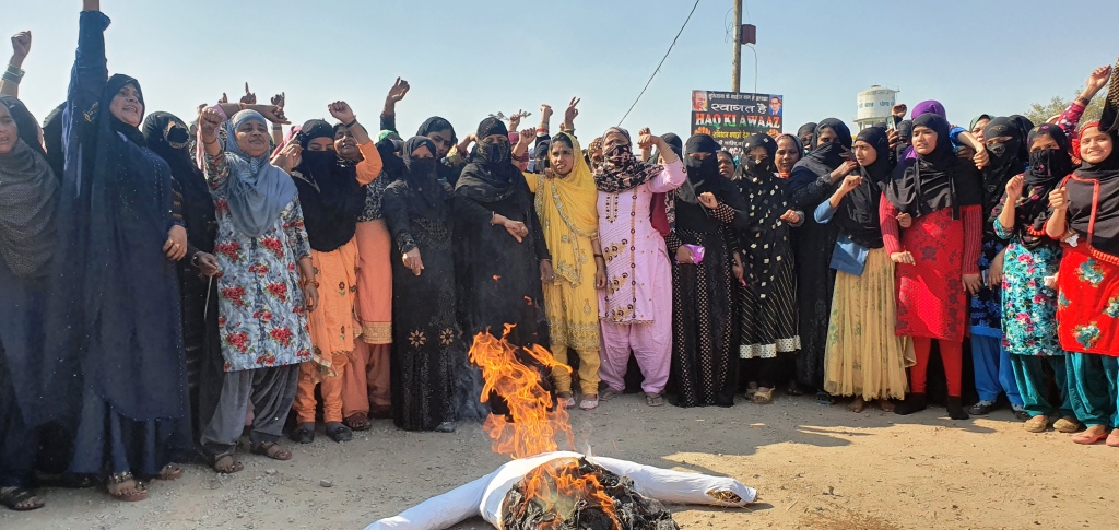 लुधियाना शाहीन बाग में उत्तर प्रदेश के मुख्यमंत्री का पुतला फूंक रोष प्रदर्शन