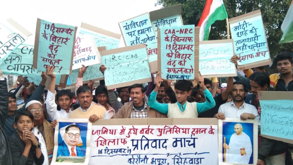 नागरिकता संसोधन विधेयक व एनआरसी के खिलाफ 19 दिसम्बर के बिहार बंद को दिया समर्थन। सँविधान के मूल आत्मा के