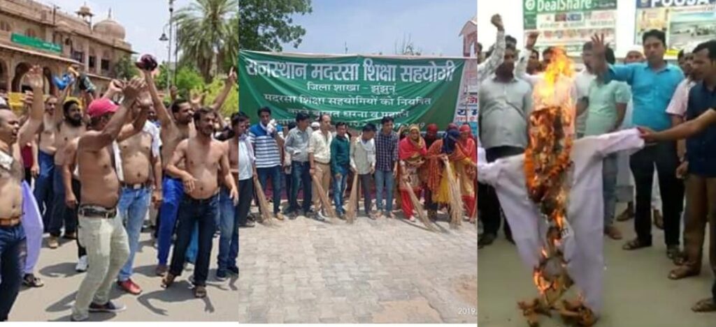 अशफाक कायमखानी।जयपुर। राजस्थान के हजारो मदरसा पैराटीचर्स पिछले पांच दिन से कांग्रेस पार्टी के अपने चुनावी घोषणा पत्र मे किये
