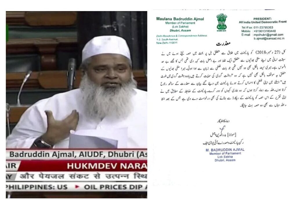 मौलाना बदरुद्दीन अजमल जैसे ही लोकसभा में तलाक बिल पर बहस के लिए खड़े हुए उन्होंने अपने भाषण करने के