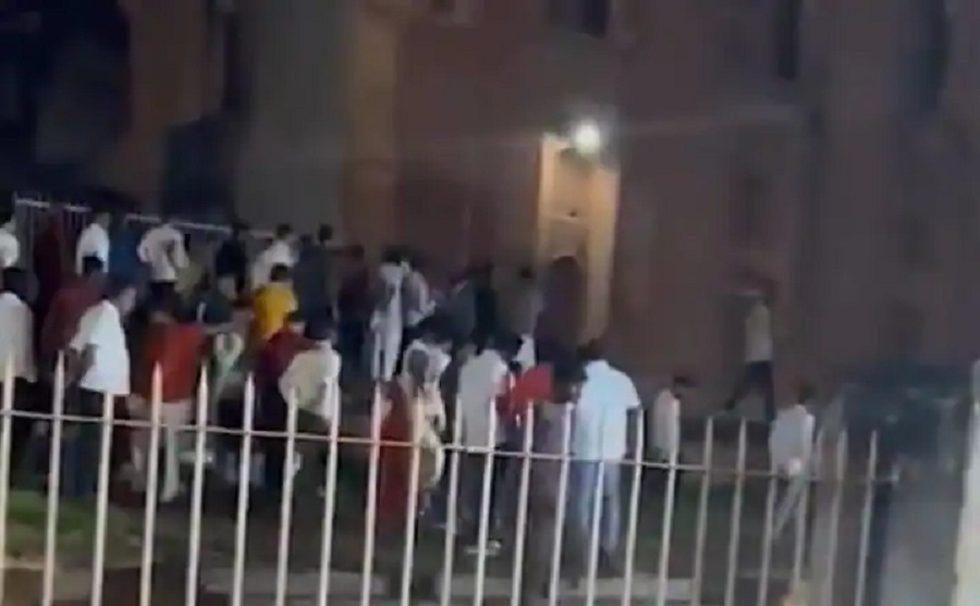 नई दिल्ली, कर्नाटक के बीदर में दशहरे के जुलूस के दौरान एक भीड़ सैकड़ों साल पुराने ऐतिहासिक मदरसे महमूद गवन