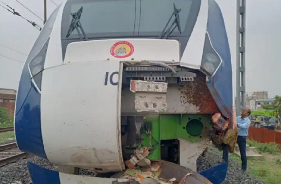 नई दिल्ली, मुंबई से गांधीनगर के बीच चलने वाली भारत की सबसे तेज ट्रेन वंदे भारत आज दुर्घटना का शिकार