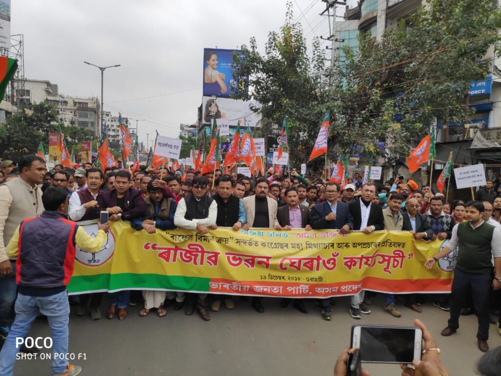 राफेल विमान मामला:कांग्रेस के खिलाफ असम प्रदेश बीजेपी ने मार्च निकाल कहा माफी मांगे राहुल गांधी