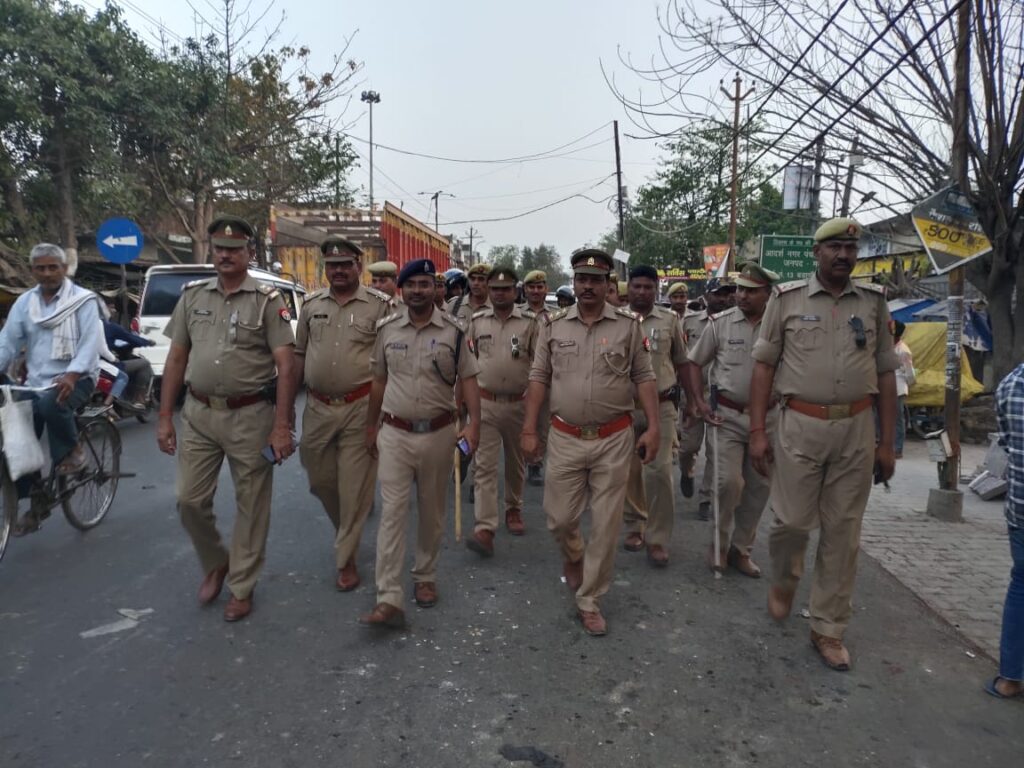 मुज़फ्फरूल इस्लाम ….घोसी,मऊ। आगामी त्योंहार होली शब-ए-बारात एवं पंचायत चुनाव को सकुशल सम्पन्न कराने हेतु शनिवार की शाम घोसी नगर के मझवारा मोड़,कस्बा खास,बैसवाड़ा, बड़ागाँव,करीमुद्दीनपुर आदि जगहों पर शांति एवं सुरक्षा को लेकर पुलिस उपाधीक्षक नरेश कुमार के नेतृत्व में कोतवाल घोसी कुमुद शेखर सिंह सहित अन्य थानों की फोर्स ने फ्लैग मार्च निकाल चक्रमण किया।इस दौरान नगरवासियों से शांति एवं सुरक्षा को लेकर अपील भी किया। पुलिस उपाधीक्षक नरेश कुमार ने कहा कि त्योहारों एवं पंचायत चुनावों में खलल डालने वालों को किसी भी कीमत पर बख्शा नहीं जाएगा।आपसी भाई चारे एवं सामाजिक सौहार्द बनाते हुए त्योहारों को मनाये।पुलिस प्रसाशन हर वक्त आमजन हेतु खड़ी है।फ्लैग मार्च में मुख्य रूप से थानाध्यक्ष कोपागंज अजय त्रिपाठी,मनोज सिंह,वरिष्ठ उपनिरीक्षक प्रदीप मिश्रा सहित काफी संख्या में पुलिसकर्मी मौजूद रहे।