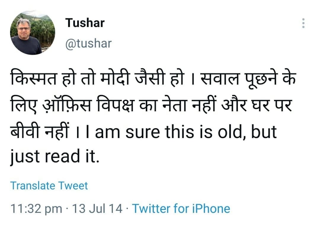 पांचाल के इस पुराने ट्वीट को मध्य प्रदेश कांग्रेस ने भी रि-ट्वीट कर चुटकी ली है। प्रदेश कांग्रेस ने कहा है, ‘हम जानते हैं ट्वीट पुराना है, लेकिन गौर फरमाने योग्य तो है ही।’ मध्य प्रदेश कांग्रेस की अधिकारिक साइट पर भी इस मसले पर खूब चुटकियां ली गई हैं। एमपीसीसी की ऑफिशियल साइट पर तुषार की नियुक्ति पर सवाल खड़ा करते हुए कांग्रेस ने कहा है,
