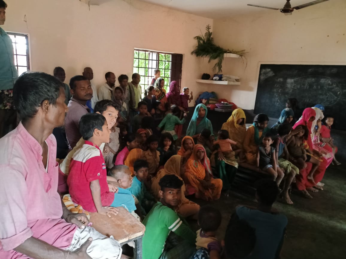 घरों मे जल जमाव के कारण विधालय मे लिया शरण 29 जून से परिवार मवेशी संग विधालय में लिया शरण अबतक किसी ने नही ली सुध