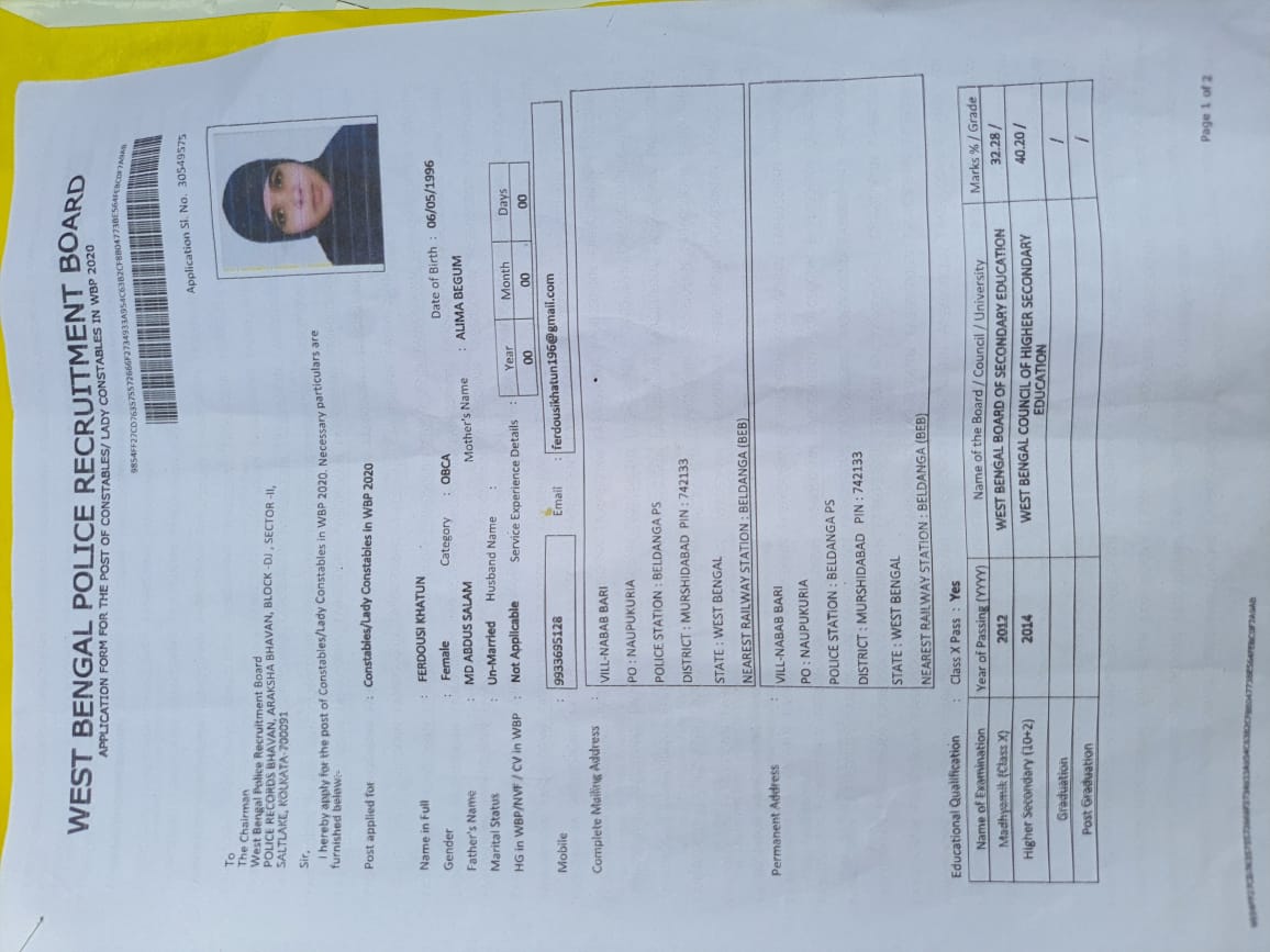 नई दिल्ली (असरार अहमद ) पश्चिम बंगाल पुलिस भर्ती बोर्ड (WBPRB) 26 सितंबर 2021 को राज्य पुलिस में कांस्टेबल और महिला कांस्टेबल की भर्ती के लिए एक परीक्षा आयोजित करने जा रहा है। बोर्ड ने 6 सितंबर को इस परीक्षा के लिए आवेदन पत्र भी जारी दिए हैं।लेकिन इस परीक्षा के लिए 30,000 से अधिक छात्रों के आवेदन पत्र जारी नहीं किये गए हैं ।उन्हें इसका कारण यह बताया गया है कि आपने फॉर्म जमा करते समय कुछ गलतियां की हैं।