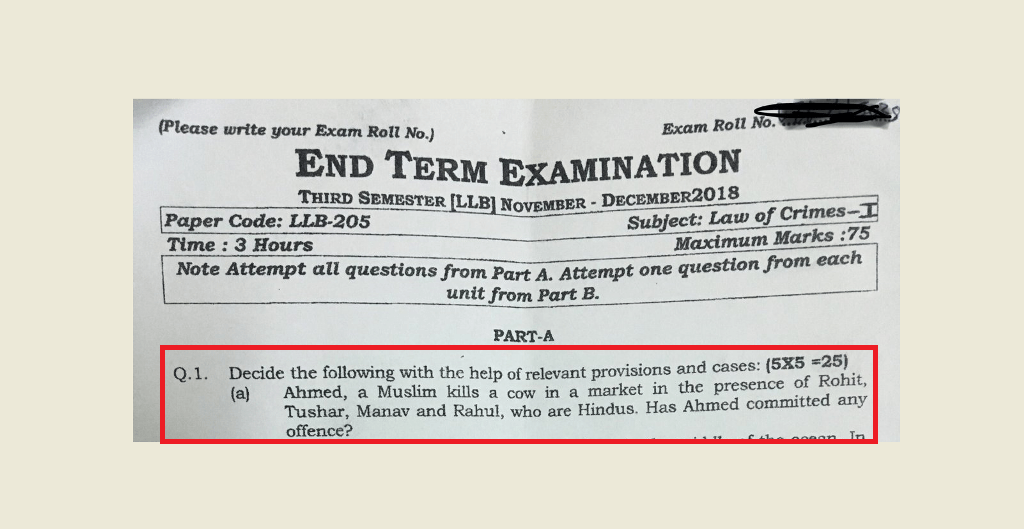 मिल्लत टाइम्स,नई दिल्ली: गुरु गोविंद सिंह इंद्रप्रस्थ विश्वविद्यालय (आईपी यूनिवर्सिटी) के लॉ की परीक्षा में मुस्लिम समुदाय पर निशाना साधते